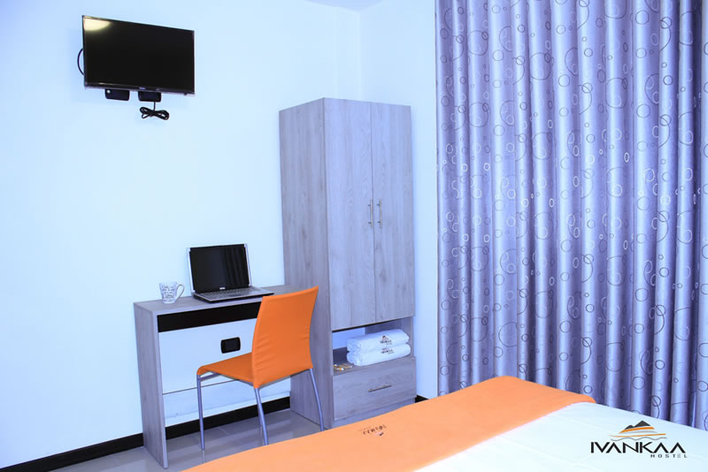 IVANKAA Hostel cuenta con habitaciones minimalistas con baño privado, camas de 2 plazas con box tarimas, colchones ortopédicos, mantas antialérgicas, mesa de trabajo, intercomunicador y frigobar. Son solo algunos de los detalles que nuestros huéspedes podrán encontrar como parte de su experiencia.